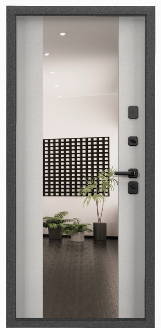 Вариант для модных и притязательных – железные зеркальные двери Ultimatum.